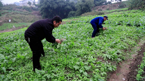 白米镇梨湾村网格员赵元平说:“为了保障冬季蔬菜供应,目前有四五十号人每天在这里施工播种。目前九丈坝蔬菜基地种植的蔬菜有莲花白、白菜两个品种,预计一月份左右上市,产量在600万斤左右,主要保障县内供应,还销往重庆、江津等周边地区。”
