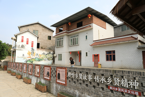 院内,原来的泥巴路变成了石铺地面,破旧的农房也进行了外墙包装和壁画展示,院坝围墙由废砖和旧瓦罐组合而成,门前竹栅栏里还栽种着长青的绿植。原本脏乱的旱厕也早已改造成了水冲厕所,户户门前放了不同颜色的分类垃圾桶,村里建立的智能垃圾分类服务站……来来往往的车辆和游客络绎不绝,桐兴村,这个原本在长江畔寂寂无名的小村落,通过优化人居环境,聚集了人气,成了远近闻名的网红打卡村。