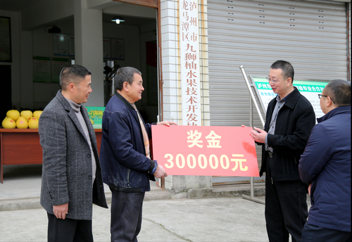 四川新闻网消息(李富平 李亚莉 记者 程海英/文图)“感谢政府的关心和指导,我们一定用好这笔奖励资金,将九狮柚发展得更好,带领更多的村民增收致富,不负政府的期望。”12月9日,泸州市龙马潭区九狮柚专业技术协会会长袁德清从龙马潭区市场监管局和安宁街道工作人员手中接过政府30万元国家地理标志奖励资金,感激地说。