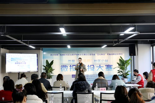 四川新闻网消息(韩孟君 记者 程海英/文图)12月24日下午,泸州市龙马潭区红星街道举行首届“星河杯”社区公益微投创投大赛。来自红星街道的11支队伍将进行小区治理、扶困助残、志愿服务、老年人关爱等四类项目的角逐,获得金奖的项目将服务于红星街道基层治理。
