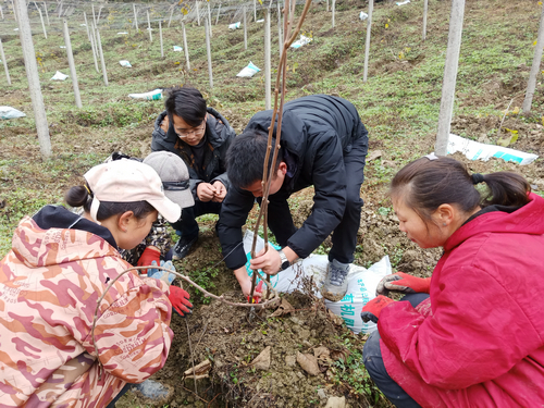 “大家修剪的时候,要会辨别,留春梢,剪秋梢和夏梢,也不是一定要根据树形,要因地制宜。一根主干,两根侧蔓,多根侧枝,侧枝一般隔四十公分留一根……”丰水猕猴桃区里中康集团的专家正在培训剪枝。