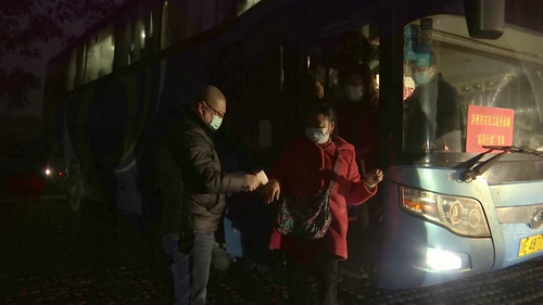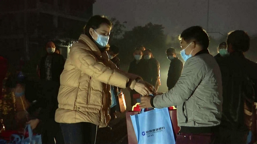 归乡心切的农民工有序排队下车,工作人员为大家测体温、送上暖心的关怀和春节大礼包,让返乡农民工一回到家乡就感受到政府的温暖。