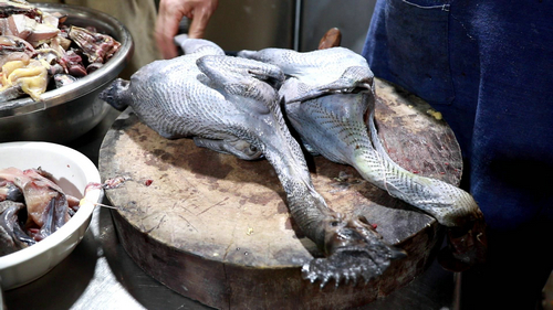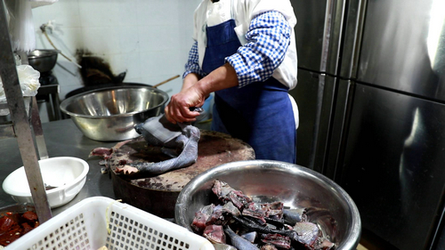 周宗平说:“这个乌骨鸡,它的皮是乌的,肉是乌的,骨头也是乌的。”