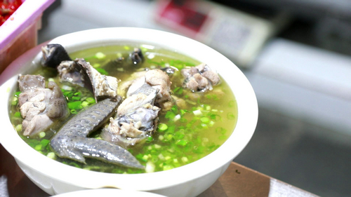 顾客张中国说:“我第一次吃这个佛荫鸡汤,上桌的第一眼我感觉特别不错,汤看上去很清澈,上面浮了一些葱花点缀,看着就很有食欲,入口很鲜。”