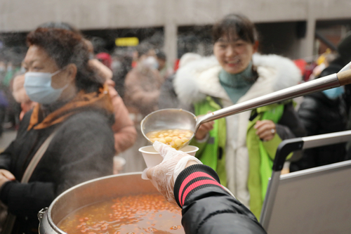 游园活动在优美的舞蹈中拉开帷幕,现场人头攒动,其乐融融。活动设置了套圈、投壶、猜灯谜、夹弹珠、踢毽入筐五种游戏,获胜其中三个游戏的居民,就可以凭借印章在“香囊、糖画、糖葫芦、剪纸”四个礼物中任选其一。此外,工作人员还为大家准备了免费的八宝粥和酒酿丸子,居民们一手拎着奖品,一手端着热腾腾的美食,脸上笑开了花。