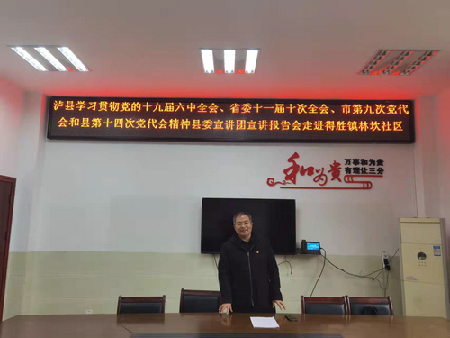 四川新闻网消息 1月20日,泸州市泸县学习贯彻党的十九届六中全会、省委十一届十次全会、市第九次党代会、县第十四次党代会精神县委宣讲团走进得胜镇,分别在得胜镇机关、林坎社区开展宣讲,得胜镇机关干部,村(社区)党组织书记和林坎社区部分党员、群众参加。