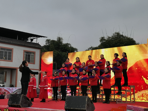 村民们演出的节目既有本土原生薅秧歌,也有红典红歌。最有特色当数《老太婆过生》,讲述的是为了做好新冠疫情的防控工作,简办生日宴席。村上退伍军人代表带来了富有气势的武术表演,赢得了现场村民的阵阵掌声。