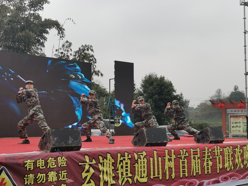 四川新闻网消息 1月22日,泸州市泸县玄滩镇通山村首届春节联欢晚会精彩上演。在做好疫情防控工作下,村民自编自导自演,用音乐、舞蹈、小品、武术等形式,展现通山村美丽乡村的幸福生活,推进新时代乡村全面振兴,投身乡村振兴样板村建设的精气神。