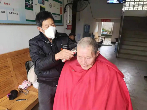 当天,在顺民村“两委”的组织下,曾国才不计个人利益,为敬老院的老人们免费理发,让老人们以新的面貌迎接春节的到来。“没必要收费,疫情期间老人家去哪也不方便,剪头发是我擅长的事情,和他们聊聊天,看见他们满意开心,其实就是对我最大的肯定。”曾国才边干活边说。