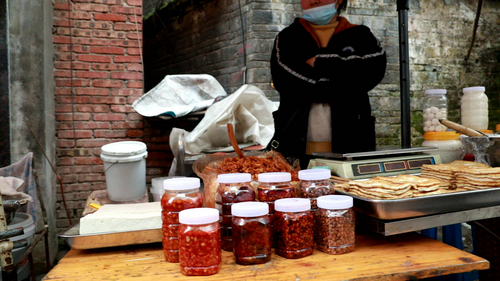 每逢三六九是白沙镇的赶集日,在张灯结彩的街巷中,鸡鸭鱼肉、茶酒炒货、干鲜果品,还有独具儿时记忆的米花糖、冰糖葫芦,样样都是过年必备“干货”。人们在集市中挑选着过年所需的各式物品,带着好心情回家贴上春联和福字,对过新年的美好期盼悄然发生。