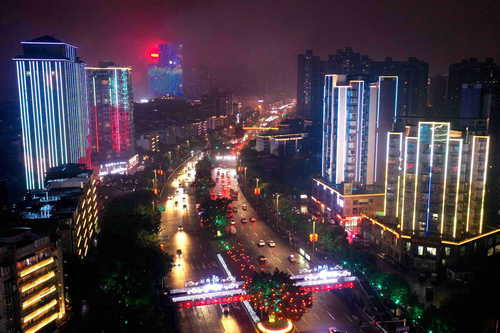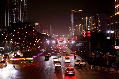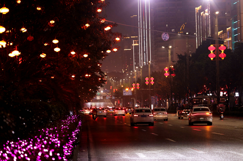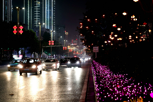 | 春节将至 灯火辉煌的街头车流络绎不绝 |