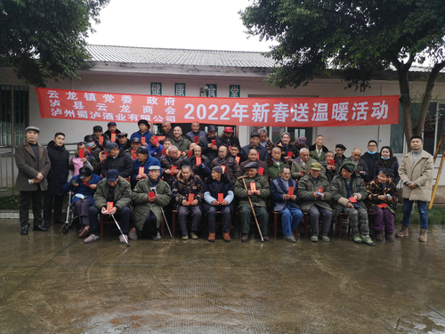 泸州蜀泸有限公司对云龙敬老院108位老人进行了慰问,分别给每一位老人送上了200元的慰问金。随后到茅坝村、高家嘴村等慰问了20户低保户和五保户,分别给每户送上了500元的慰问金。当走到高家嘴村一低保户时,了解到该户情况确实非常困难,随同开展慰问的泸州蜀泸酒业有限公司负责人个人又向该户送上慰问金200元。每到一户不仅送上慰问金,还送上了新春的祝福。