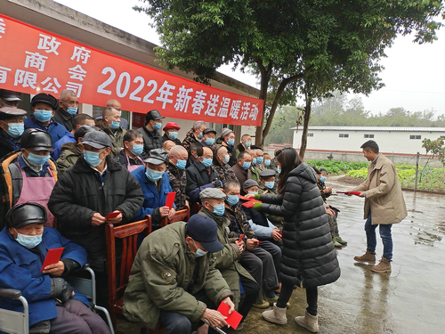 四川新闻网消息(魏志游 记者 程海英/文图)1月26日,泸州市泸县云龙镇党委、政府组织云龙商会、泸州蜀泸酒业有限公司等开展2022年春节送温暖活动。