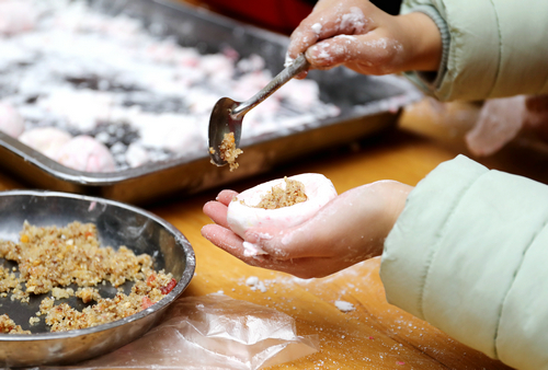 活动现场,志愿者和老人一起和面、分团、包馅儿、封口,在一片欢笑声中,一个个寓意着美好团圆的汤圆被整齐地放在盘中,“等待”下锅。