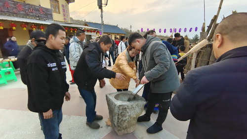 走进雷火坪彝寨,此刻一年一度的元宵佳节庆祝活动已经正式拉开帷幕,大伙正在热火朝天地舂糍粑,100多斤糯米分批蒸熟,被打成热气腾腾的糍粑,加油声、欢呼声不绝于耳。“糍粑打了3锅,男女老少大家齐动手,自己动手打的糍粑格外甜”,来现场参加打糍粑的三桂村支部书记王业宽说到。