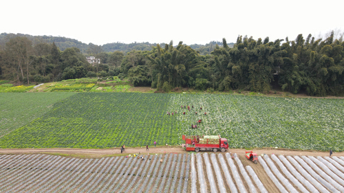 在白米镇梨湾村九丈坝蔬菜专业合作社的基地里,一颗颗圆润饱满的大白菜也迎来了收获时节,菜地里,工人们砍菜、精拣、搬运,生产便道旁的大货车敞开货箱,新鲜的大白菜一离地就被送往了农贸市场。