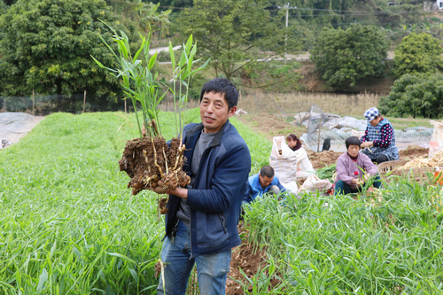 万志芳说:“我们的仔姜已经采收了一个礼拜左右了,预计还再过几天,我们这一季的仔姜基本上就采收完了……预计的产量在亩产六吨左右。我们这季仔姜采收完以后,我准备把我这块地夏天又再翻耕以后种反季节香菜,能使其市场上大家都能够吃到新鲜上市的反季节香菜。”