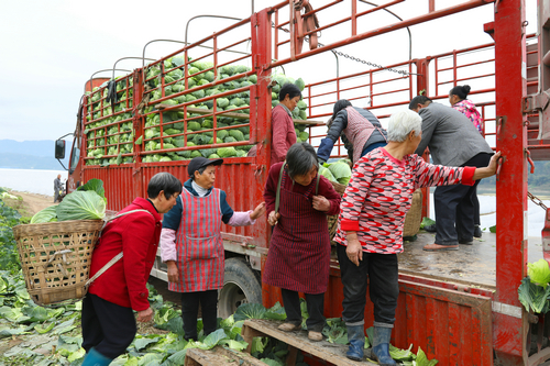 “这一批的大白菜是在去年12月底左右播种的,然后从今年二月份陆续开始采摘,每天基本上有50多个人的务工群众来采摘,所有的白菜80%以上都销往重庆江津的双福国际农贸城。”白米镇梨湾村第一书记李洪表示。