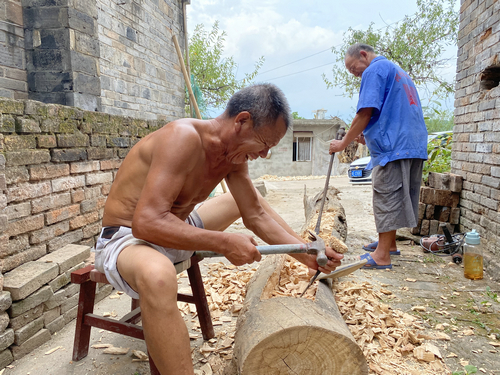 | 村民就地取材造风景 |