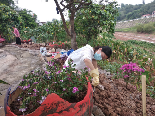 | 志愿者忙着栽种花草 |