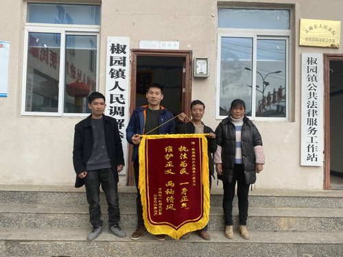 2022年彭氏兄弟两家人时隔多年又一起团聚过了春节,并在春节后带上锦旗来到椒园镇综治办表示感谢。