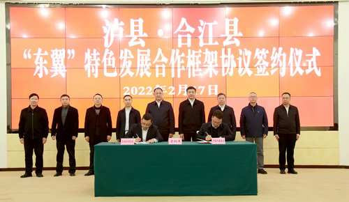 座谈会上,泸县、合江县分别介绍了推进泸州“东翼”发展前期工作开展情况和下一步合作思路,现场签订《合江—泸县“东翼”特色发展合作框架协议》。双方将强化联动协作、资源共享、优势互补,携手夯实发展基础,共同建设“绿色低碳发展试验区、共同富裕先行区、川渝融合创新示范区”,打造国家天然气(页岩气)千亿立方米产能基地、绿色化工和新材料产业基地、川渝特色农旅经济走廊、“巴蜀鱼米之乡”示范区、优质白酒生态酿造区、中国调味品产业文化传承示范基地,推动合江、泸县全方位、宽领域、深层次合作,确保“东翼”绿色低碳融合发展在两地落地落实,