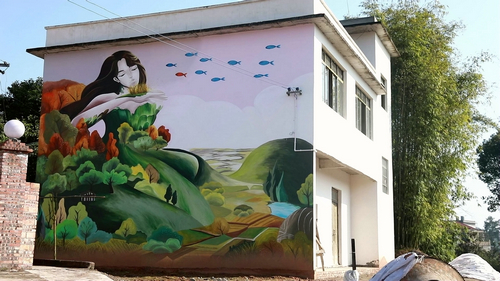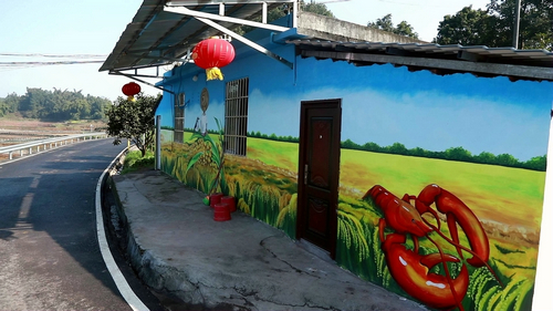 白米镇斗笠村村主任助理刘雷说:“斗笠村打造的三幅墙画主要是为了借人居整治项目提振乡村美丽景色,根据我们村的历史文化底蕴和产业发展,描绘了白米洞、稻虾画还有村姑娘三幅景色,打造了一个路平、灯亮、景美的美丽乡村画,接下来我们将组织更多的艺术爱好者,选取点位,提供绘画的原料,让他们来绘画,把乡村墙画做得更好。”
