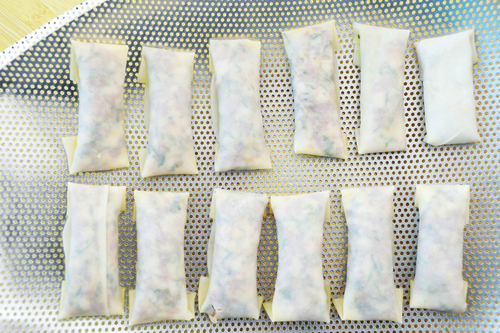 将新鲜采摘的野山葱洗净切碎,加入剁剁好的肉馅中,顿时野山葱的清香和肉馅融为一体、扑鼻而来,加入适量的盐后,美味的野山葱肉馅就准备好了。野山葱肉馅做成春卷,再经过高温油炸后,春卷外表酥脆、鲜香四溢,吃上一口春卷,仿佛置身清新明媚的田野春光。