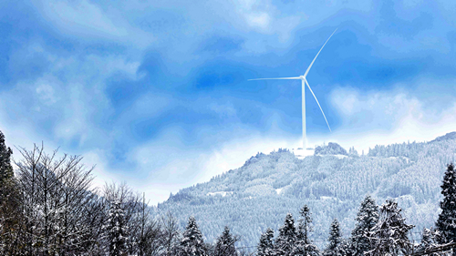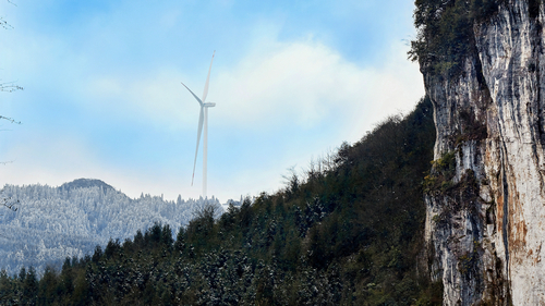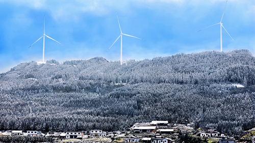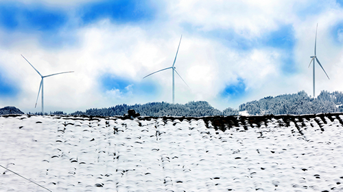四川新闻网消息(张亚兰 王川 记者 程海英/文图)近日,泸州市古蔺县箭竹苗族乡箭竹坪49.5MW风电项目初露锋芒。在蓝天白云下,层峦叠嶂间,皑皑白雪中,随风转动的“大风车”与大自然和谐相融,点缀出一幅幅美妙绝伦的乡村振兴山水画。
