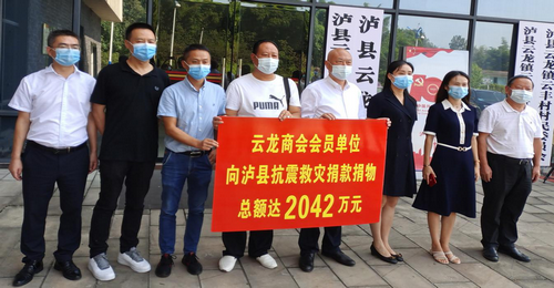2021年9月16日,泸县发生了6.0级地震,商会立即向会员发出倡议,70多名会员先后向泸县地震灾区捐款捐物,总额达2042万元,其中四川鑫福产业集团董事长赖大福向泸县地震灾区捐款2000万元。云龙商会用一次次的实际行动,践行着奉献为家乡的诺言。