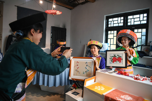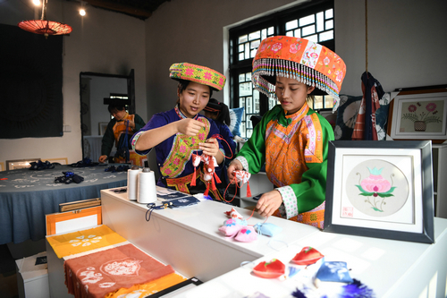 截至目前,已成功带动全市1000余人居家就业,蜡染、刺绣手工艺品通过线上、线下销售到国内外,人均增收10000余元。