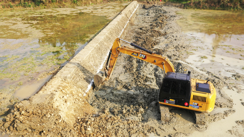 在石屏镇扎山村,挖掘机、铲运机来回穿梭,工人们正在砌筑田埂。该项目点目前已经完成格田田型调整、机耕道及田间道路基础建设、秸秆堆肥。接下来还将优化施工组织,加大施工力度进行排灌渠、田间道路建设等施工。项目预计4月底全面完工,做到不误农时、不误生产。