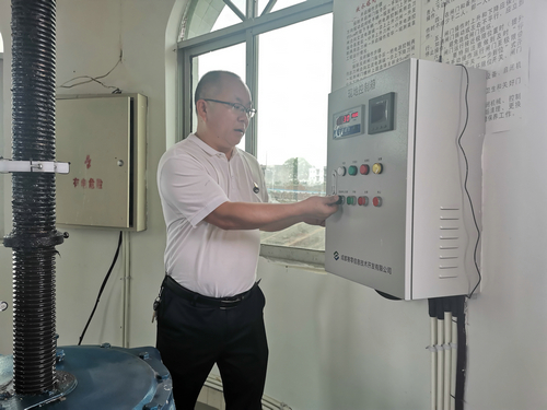 | 泸县三溪口水库管理所所长吕享华按下放水键 |