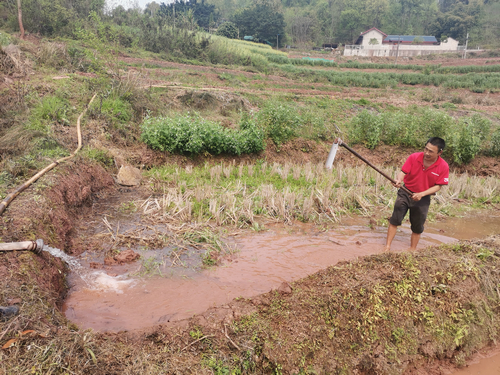 | 村民正在抽水灌溉农田 |