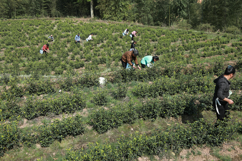凤鸣镇新洋村依托得天独厚的气候、土壤和水质等宜茶优势,2018年引进农业公司在当地流转土地种植黄金茶和白茶200多亩,经过三年的管护,今年进入丰采期。现在正是采摘春茶的季节,每天基地采茶的工人就有20余人,据介绍,今年干茶产量预计1000余斤,产值将达到145万余元。