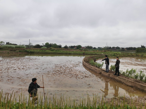 在方洞镇陈田村,泸县粟喻粮油专合社基地的农田里,泸县农业农村局农技专家正在指导蓄留再生稻的人工插秧与机械插秧对比试验。