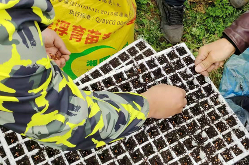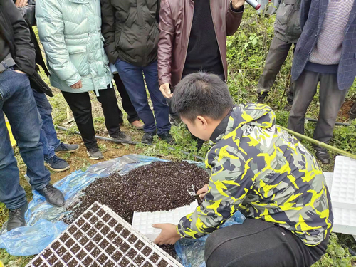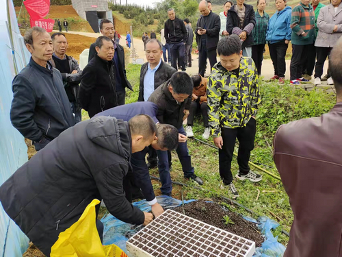 平地、装土、起梗、播种、施肥、覆泥……掌握技术要领的种粮大户按照步骤要求进行实操,石宝镇农业农村服务站黄明义对施肥盖膜、育苗阶段粪团育苗、小拱棚育苗进行现场指导。
