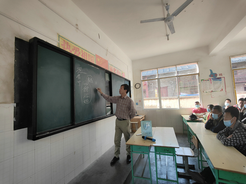 “山银花在管护过程中易出现蚜虫病、蜱虫病、根腐病、蚂蚁咀食等问题,要如何防止呢?首先我们要正确认识这些病症、病因及防治。接下来我们先来认识第一个:种植山银花如何防治蚜虫病……”李剑此刻化身传授知识的老师,站在教室讲台上细细讲解,用心板书。