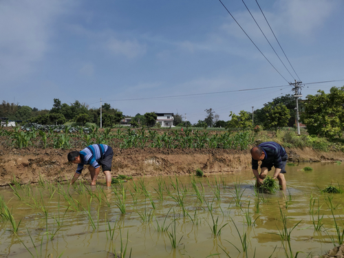 从4月初开始,当地的农民便开始了今年的水稻栽插,整个插秧时间将会持续到4月下旬。在插秧的同时,农民还把田块的边角及田坎充分利用起来栽种玉米和大豆,实现土地的综合利用,增加种植效益。