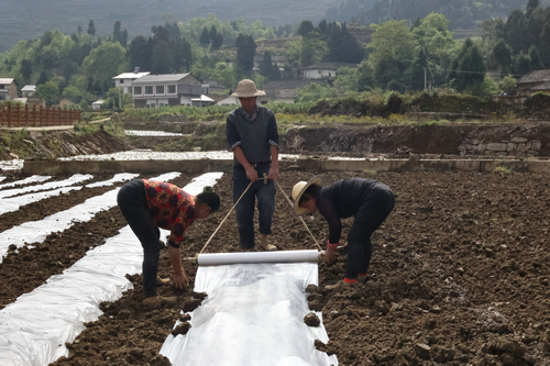 据悉,今年红沙村规划种植2259亩糯红高粱,现已完成种植约1500亩,待高粱全部完成种植后将与大豆进行套种,另外今年有320亩高粱实行试点覆膜种植,是双沙镇第一次尝试规模化的覆膜种植高粱,据农技员刘国辉介绍,覆膜种植高粱能够起到保温、保湿、除草的作用,能为高粱提质增产打下坚实基础,由于覆膜种植方式需要起埂、覆膜,相对传统种植工序更为复杂,为打消村民顾虑,红沙村集体统一为参与试点种植户发放薄膜,并聘请机器起埂或采取按每亩100元起埂工费补贴给农户,极大的调动了村民试点种植积极性,激发了生产热情。