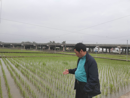 “同一块大田,被隔成了小块。同一天栽种秧苗,你看同一块田不同的秧苗,颜色深浅不一,这就是肥料施多少的区别。”郑家奎给我们解释说。