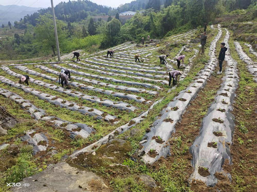四川新闻网消息(王滔 记者 程海英/文图)4月13日,在泸州市古蔺县观文镇星凤村烤烟基地移栽现场,30多人分工明确,掏洞的、放苗的、覆膜的、埋蔸的,整个烟田一片热火朝天。