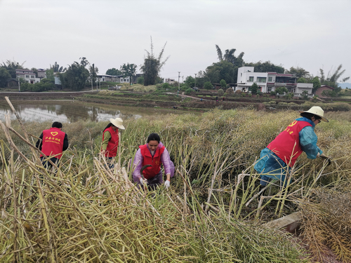 | 方洞镇党员志愿者帮助村民收割油菜(曾佐然摄) |