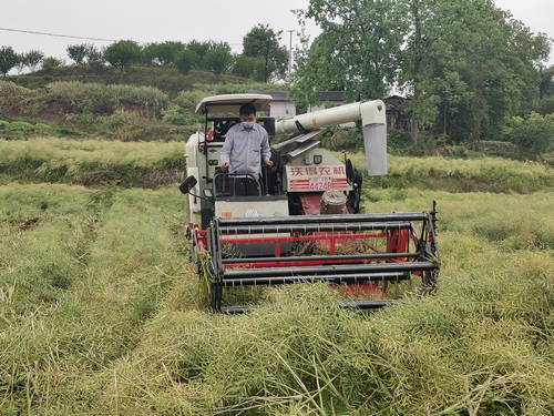 “从去年以来,我们一直在大力推广油菜的两段式收割方法。先用机器把油菜放倒,放倒之后通过晾晒,然后再用机器进行脱粒,这种收割方式与以往的一段式收割方式相比,机收的损失可以减少50%以上。”泸县农业农村局安全办副主任颜波介绍。