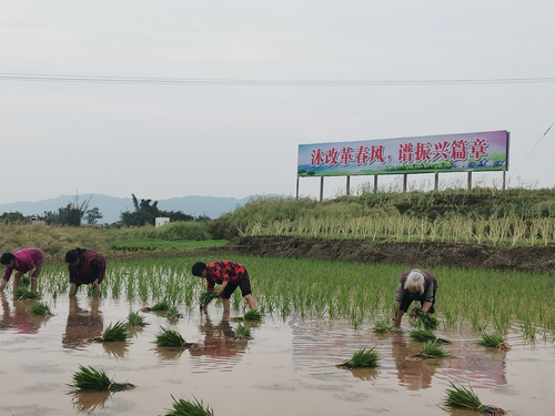 | 方洞镇陈田村收割了油菜后插秧(曾佐然摄) |