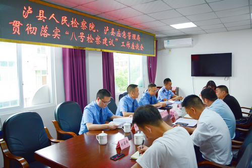 座谈会上,泸县检察院与泸县应急管理局共同签订《关于在生产安全领域和安全责任事故调查中加强协作配合的办法(试行)》。泸县检察院就“八号检察建议”的制发背景、主要内容和重要意义进行了详细解读。双方针对安全生产方面存在的薄弱环节和突出问题展开讨论,并就进一步强化部门协作配合,构建安全生产治理良性互动机制,落实行刑衔接、常态化联络联动、线索共享平台、重大风险防范化解机制等方面交换意见。