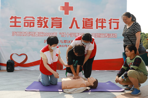 四川新闻网消息(杨尚威 张霞 记者 程海英/文图)5月8日,在泸州市龙马潭区万达广场上,一场走进街头的急救课正在火热进行中,在当日开展的红十字博爱周主题宣传活动上,龙马潭区红十字会的应急救护师资通过理论讲解、教学示范、实操指导,将心肺复苏、海姆立克急救法的步骤和要领传授给参与群众,让更多人了解和学习急救技能。