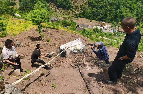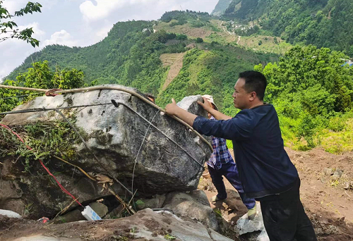 原来,水潦彝族乡大坝村在近日开展民心守护工作中接到群众线索反映,当前汛期来临,三社青杠林(小地名)山腰上有一巨石(约5吨重)有松动迹象,对下方5户农户及村卫生室造成安全威胁,请求村上帮助解除危险。