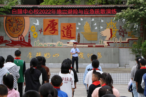 白腊苗族乡各校点组织师生观看防灾减灾视频,发放宣传教育资料,对地震、火灾、洪水、泥石流、极端天气等相关避险知识进行宣传培训并组织进行了疏散演练。