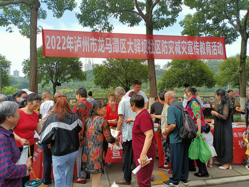 近日,泸州市龙马潭区红星街道组织各社区安全员在大驿坝社区滨江路开展防灾减灾集中宣传教育活动。工作人员站在宣传台前向居民朋友详细讲解防灾减灾知识,并组织开展防灾减灾知识有奖问答活动。活动现场气氛热烈,前来咨询关注的群众络绎不绝,共发放山洪灾害、地质灾害、城市内涝、消防等宣传资料500多份,发放小礼品120余个。